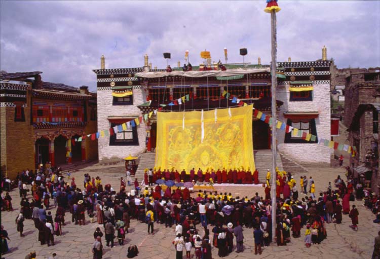 每間寺院收藏的巨型佛畫並不一樣﹔拉薩市布達拉宮所收藏的為大日如來及阿彌陀佛各一幅﹔青海塔爾寺收藏金剛薩 、藥師佛、宗喀巴大師及釋迦牟尼等數幅﹔四川大藏寺在文革前則存有釋迦佛、獅子吼如來、彌勒佛及宗喀巴祖師各
