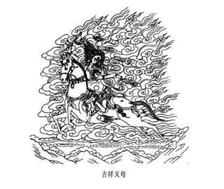 甘丹寺分為蔣孜院及薩孜院兩座學院。在歷史上,蔣孜院的方丈選舉是這樣的:在有必要選出新方丈時(例如老方丈圓寂或屆退任之時),全院僧人上殿誦念甘丹寺蔣孜院護法吉祥天母祈請文,請求他為寺院選出適合當方丈的人選,然後全體在地區政府及寺院監事團監督之下退出,由各監督人在所有殿門及窗上封條蓋印,確保沒有人能在夜間進殿做手腳。翌日,大眾一起見証拆封及打開殿門的儀式。在入殿後,本來是空的方丈法座上放著誰的坐塾,那坐塾的主人便是由蔣孜院護法吉祥天母親自顯靈任命的新方丈,大眾既不會異議,受命繼任方丈法座之僧人亦不得違抗。這樣的事聽起來似乎匪夷所思,但護法吉祥天母的靈異倒是藏人司空見慣的了,所以也已變得見怪不怪。