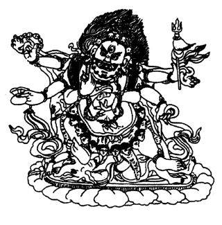藏傳佛教中有不少護法,每一尊護法各自又有不少不同形相,單只瑪哈卡那已有六臂相、四面相、四臂相及白色瑪哈卡那相等等。在西藏寺院中,都有供奉護法的傳統,但六臂相的瑪哈卡那卻與川北名剎大藏寺有更深一重的淵源。此寺院與他的密切關係非比尋常,在西藏史上尤其嘉絨一帶(現今的川北地帶)歷來傳為美談,每年更有大批、大批的遠地香客專門前往大藏寺向此護法祈求。