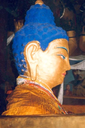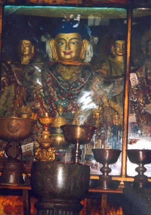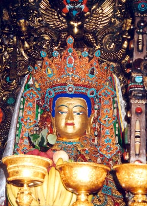 在五百多年前,格律派宗喀巴祖師曾向大昭寺中的十二歲等身佛像獻上純金五佛寶冠及足金鑄成的油燈。筆者在入藏時沒有問及它們,但恐怕它們早已於幾十年來的政治變動中被毀了。