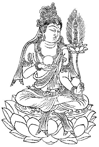 (菩薩)亦稱「寶掌菩薩」。譯之為寶手。又其密號稱為「滿足金 剛」,乃係因為自手掌生出萬賓而拯救一切眾生,故有此 名。 此一菩薩,住於胎藏界曼荼羅地藏院之上起第六 位,為六地藏尊之一。 在「祕藏記」中有云:「肉色,取蓮華,其上有三鈷 跋折羅,再其上則置有寶珠焰鬘」;其中指出,這是菩薩 形,而其左手持蓮上立百三鈷者,再其上安置三弁寶者, 其右手則仰掌,按於胸前,坐於赤蓮之上。至於印相 ,其右手握成胎拳並立起無名指,此外「青軌」中說:「 以食指來壓推其餘三指的指甲」。